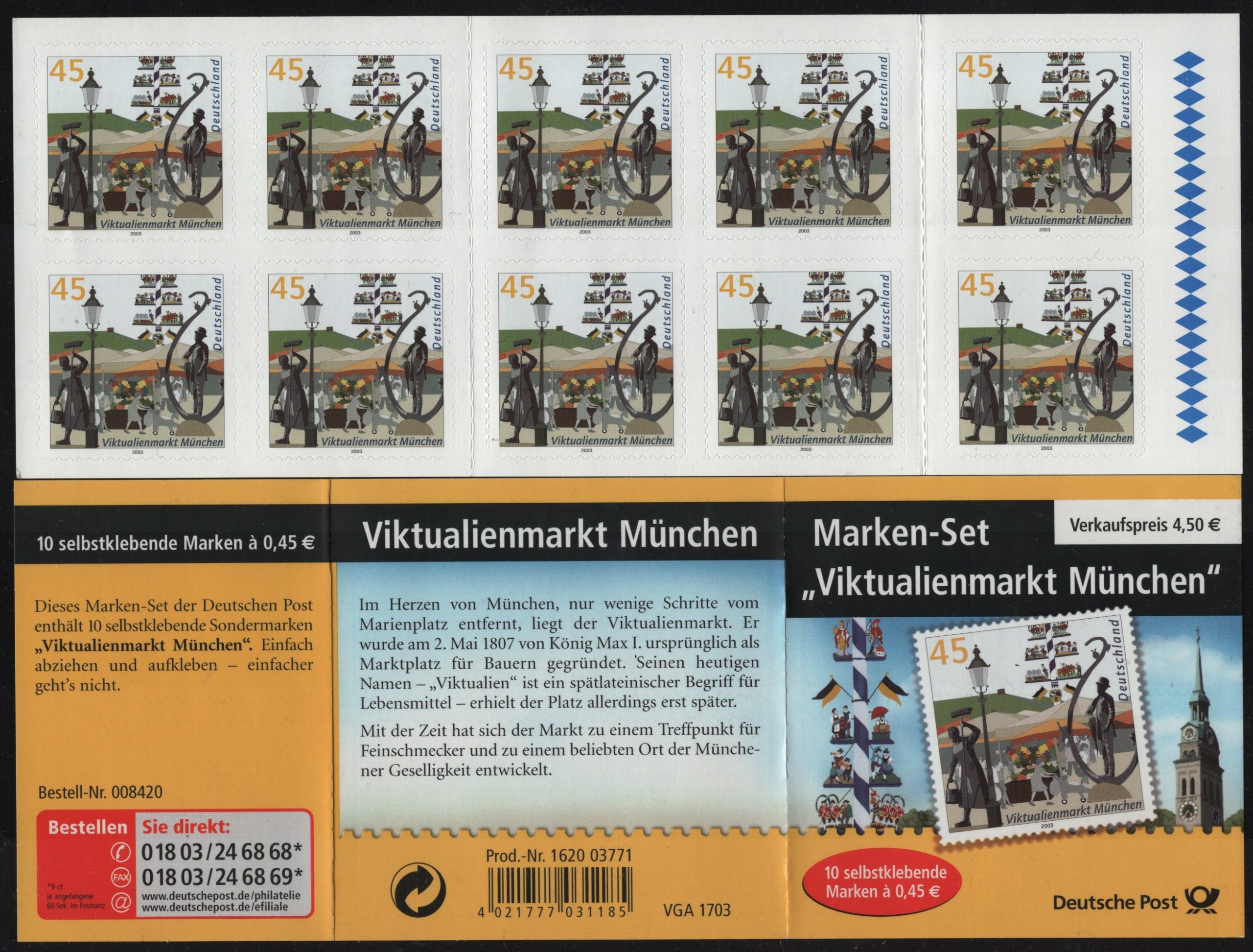 Bund – Markenheftchen – ab Euroeinführung – postfrisch – MH 053 II – Michel: 2379 – Viktualienmarkt München mit Kerben